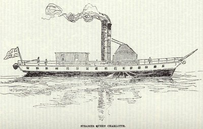 The following additional details concerning her are given by Canniff. "Almost immediately after the Frontenac was launched a second steamboat was commenced. The material which had been collected while building the Frontenac had not all been used, and went far in the construction of the Queen Charlotte, which was destined to be the pioneer steamer upon the Bay Quinte and River St. Lawrence in its upper waters. She was built by shares of £50 each. Johns and Finkle had nine shares. She was built (Gildersleeve, being the principal shipwright), launched, and commenced running in the early part of 1818. The engine was furnished by Brothers Wards, of Montreal, being made at their foundry. She was not long launched before she was ready to run. She made trips twice a week from Wilkins' Wharf, at the Carrying Place, to Prescott. She was commanded a few of the first trips by an old veteran captain named Richardson, who lived then near Picton and afterwards to the close of the season, by a young man named Mosier. Of the number of passengers on the first trip we have no knowledge, but suppose them to be few, for Belleville, then the largest place above Kingston, was a mere hamlet -- Trent,Hallowell, Adolphustown and Bath were the only stopping places from the head of the bay to Kingston. They were regulated in their course the first summer by frequently heaving the lead, an old man-of-war's man being on board for the purpose. (Collins reported in 1788 that vessels drawing only from eight to ten feet of water can go into the Bay of Quinte). For two seasons she was commanded by Captain Dennis; Mr. Gildersleeve was purser the second and third seasons; and the fourth commenced his captaincy, which lasted as long as the boat was seaworthy, a period of nearly twenty years: he was at the building, a master shipwright, and became a stockholder. The fare from the head of the Bay of Quinte to Kingston for the first season was £1 5s. currency, equal to $5; this included meals. The Charlotte was a very acceptable improvement in the navigation of the day. A few of the owners of sailing craft, perhaps, suffered for a time; but the settlers regarded her as an unmixed blessing. During the first years she was so accommodating as to stop anywhere to pick up a passenger from a small boat or let one off. She was not a commercial success until Gildersleeve became her commander; after that she paid well. She ran for many years, and was finally broken up on the shores of Cataraqui Bay. In this year an important amendment was made in the Lighthouse Act, which has been before referred to as having been passed in 1803. It was felt to be a great hardship at ports where there was no lighthouse that the ships frequenting or passing that port should be subject to lighthouse dues, so it was enacted that "No vessel, boat, raft, or other craft of the burthen of ten tons and upwards shall be liable to pay any lighthouse duty at any port where there shall be no lighthouse erected, any law or usage to the contrary notwithstanding." The Kingston Gazette, in its impression of May 12th, contains the following paragraph, dated York, April 30, relating that:-- " Captain Patterson, of the schooner May Flower, last week tried in this harbor the power of a machine which he has invented for propelling small vessels in light winds or to work out of harbor with a contrary wind. The experiment completely answered his expectations, the vessel proceeding with a comparatively small power at the rate of three knots, or miles, per hour, and he feels confident that when the machinery is complete it will perform at the rate of five miles per hour." This is the first reference to the schooner named herein, also to the machine of Captain Patterson's invention. It is also the last, so it may be presumed it was not a very great success The same paper contains an advertisement from the Assistant Commissary General's office offering for sale "a number of batteaux and Durham boats, with their appurtenances," also a "second-hand cable." On May 8th the Frontenac arrived at Kingston from Niagara, having on board two companies of the 70th regiment. The following week, May 19th, the Gazette mentions the fact that the stage between Kingston and Prescott had been discontinued, adding, "This would be more regretted had not the new steamboat Charlotte now commenced running up and down the river, so that travellers on this route may be accommodated with a safe and agreeable passage by water instead of the former carriage by land." A terrible storm swept over Lake Ontario in the middle of this month. The Gazette thus refers to it:--" The steamboat Ontario, which was, in the recent storm, driven on a ledge of flat rock near Oswego, has been got off and arrived here this morning." The paper aids that the damage, though not inconsiderable, is less than was anticipated, and concludes its remarks thus:--" It is expected she will be ready for further operations in a week or fortnight at the fartherest (sic)." The Ontario was an American vessel, belonging to Sackett's Harbor. As soon as navigation opened in 1819 the Frontenac is again mentioned, for the Kingston Chronicle, April 30th, contains this advertisement:-- "The steamboat Frontenac, James McKenzie, Master, will in future leave the different ports on the following days:-- "Kingston for" York on 1st, 11th and 25th days of each month. York for Queenston on 3rd, 13th and 23rd days of each month. Niagara for Kingston, 5th, 15th and 25th days of each month. "Rates of passages from Kingston to York and Niagara £3. From York to Niagara £1; children under three years of age half price, above three and under ten two-thirds. A book will be kept for entering the names of passengers and the berths which they may choose, at which time the passage money must be paid. Passengers are allowed eighty pounds weight of baggage. Surplus baggage will be paid for at the usual rate. Gentlemen's servants cannot eat or sleep in the cabins. Dec