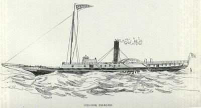 Among the freight steamers the Britannia, Lord Elgin and St. Lawrence, the property of Mrs. Brown, of Hamilton, ran from there to Montreal. The Scotland, Western Miller and Ottawa, owned by Messrs. McPherson & Crane, took the same route. The England, Ontario, Hibernia and Free Trader, owned by Messrs. Hooker & Holton, were also on this route, as also were the Dawn and Protection, besides a third vessel, all the property of Messrs. H. Jones & Co., of Montreal. These were all the freight steamers between the head of the lake and Montreal. In addition to these the Montmorenci ran from Hamilton to Quebec, the Reindeer from the latter place to Port Stanley, and the propeller Brantford from St. Catharines to Montreal. Among the new projects for the season was John Quinn's steamer, the Citizen, built to run between Toronto and the Island. Quinn was a very popular man and had previously been steward on board the Maple Leaf and City of Hamilton. The schooner Jenny Lind, Robert McClean, master, carried freight from Toronto, ascending the Welland Canal to Dunnville throughout the season of 1853. The Mazeppa, Captain Donaldson, resumed her course between Toronto and St. Catharines. Another sailing vessel, described as the Brigantine Sophia, Captain John McGregor, carried freight and a few passengers from Toronto to Owen Sound. Charles Thompson, steamship owner, of Toronto, advertised on April 20th, 1853, as follows: The Subscriber having purchased the NEW FAST Low Pressure Steamboat HAS to announce that she will leave Dunnville on MONDAY, 2nd MAY next, for the Sault de St. Marie and Sturgeon Bay, in order to commence the usual trips, on the Old Northern Route, between the above ports, under the command of CAPT. ALEX. McGREGOR, and will stop at the fifteen different ports on her upward trip, between Danville and the Sault de St. Marie. For FREIGHT or Passage apply on board, or to the owner, Church Street, Toronto. The Ocean Wave, Captain A. Wright, made occasional trips throughout this season from Toronto to Ogdensburgh. In the latter end of April a change occurred in the command of the Chief Justice, Captain W. Milloy replacing Captain Wilder. The fast-sailing schooner Defiance, Captain Moodie, ran twice a week throughout the season of 1853, between Toronto and Niagara. Robert Maitland, Church street wharf, was the principal owner. Quinn's new steamer, the Citizen, made her first trips to and from Toronto and the Island on Thursday, May 19th. The return fare was only eight cents. On Lake Simcoe in the season now spoken of, the steamer Morning, Captain Charles Bell, ran from Bradford Landing to Barrie in connection with the stages running from the former place to Toronto. One of the most melancholy disasters that ever occurred on Lake Ontario took place on the morning of April 30th when the steamer Ocean Wave was destroyed by fire, when she was about twenty-three miles west of Kingston and two from the Ducks. The vessel was well provided with both boats and buckets, but it was found impossible to obtain the former for the use of the passengers, as the fire in the brief space of twenty minutes had consumed the cabin. This catastrophe resulted in the loss of twenty-eight lives, fifteen of these being members of the crew. The schooner Emblem, Captain Belyea, of Bronte, and the Georgina, Captain Henderson, of Port Dover, rendered the passengers of the ill-starred vessel every possible assistance. The former conveying those rescued to Kingston. On Friday, May 6th, the new steamer Citizen left Brown's wharf,Toronto, at half-past three o'clock, passed through the east-era channel recently formed through the peninsula, proceeded to the river Humber and returned to Toronto in the evening. Only the day previously one of the local papers pronounced this feat "to be impossible." On May 5th Captain Gaskin, in command of the Cherokee, an ocean-going three-masted sailing vessel, left Toronto direct for Liverpool, where she arrived in safety on the 16th of the following month. A fore and aft schooner known as the John Hiseman was launched at the marine shipyard, Kingston, on May 10th. She was of 310 tons burthen, the property of Mr. W. Myers, and intended for the timber trade. The Toronto Leader of May 20th remarks that " a first-class schooner called the Admiral was launched at Port Hope on the 11th inst. She is of about 140 tons measurement." This vessel was intended for the timber trade. On June 1st the coroner's jury which sat to investigate the Ocean Wave disaster and the deaths caused thereby returned a verdict of what really meant "accidental death." The captain was exonerated, as were all his officers, in fact no one was to blame. The Toronto Leader-- and other papers concurred in its remarks --very justly observed that "the public will hardly be satisfied to be told in effect that in this melancholy case no one is to be blamed." The steamer Victoria, L. J. Privat, commenced her regular trips between Maitland's wharf,Toronto, and the hotel on the peninsula on June 3rd. This note is appended to her advertisement: " No connection with any other boat or racing," On Friday, June 10th, in the early morning, the steamer Admiral met with a similar fate as had a few weeks earlier befallen the Ocean Wave. While lying at the foot of Browne's wharf,Toronto, she was burnt to the water's edge; happily no lives were lost. The cause of the fire was supposed to be purely accidental. The Peerless, Captain Dick, which was launched on January 6th, began early in June to make daily trips to Niagara and return. On Saturday, July 9th, yet another steamer fell a victim to fire, the Queen of the West being entirely destroyed while lying at her moorings in Hamilton Bay. The loss of this fine vessel was looked upon both in Hamilton and Toronto as a public calamity and much sympathy was felt for Captain Harrison, who was the largest shareholder in the vessel, losing, besides, everything in the shape of wearing apparel and personal pro