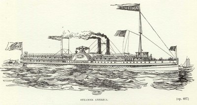 A three-masted sailing vessel, called the City of Toronto was launched at Toronto as the close of the summer. She was an oceangoing vessel, and arrived in Liverpool after a safe and prosperous voyage on October 4th, 1855. Unhappily, her life was a very brief one, as she was lost in the Straits of Belle Isle on August 17th, 1857. Her first voyage was accomplished in just twenty-four days. On Lake Simcoe, in this year, the Morning continued to ply under the same captain. The Kaloolah,Oxford and Mazeppa ran from Collingwood to Owen Sound and intermediate ports. An American steamer, known as the Keystone State, ran in connection with the Northern Railway each Thursday from Collingwood to Chicago. The Oxford just mentioned ran aground in Lake Huron during the autumn and became a total wreck. Daring the winter of 1855 and '56 there was, as usual, little movement of any vessels, either steam or sailing, on the lakes. Upon the re-opening of the harbors in 1856, the following steamers began to ply:--The Peerless, between Toronto and Hamilton; the Chief Justice, between Toronto and Presqu' Isle; the Mayflower and Champion, between Toronto and Cape Vincent; the steamers Canada and America, from Hamilton, forming a separate line for both freight and passengers between that city,Cape Vincent, Brockville and Ogdensburgh. consisting of the Cataract, Bay State, Northerner and Niagara. Their route was from Niagara to Toronto, Rochester, Oswego and Ogdensburgh. Besides these lines there was in addition the American Express Line of river steamers, described as being from Montreal, " the shortest and quickest route to all western ports, Niagara Falls, and Buffalo." This line comprised the first-class river steamers Jenny Lind, Capt. L. Moody; Montreal, Capt. J. Laflamme; British Queen, Capt. A. Cameron. One of the above river steamers left Montreal (Sundays excepted), at 12 o'clock, noon, from the Canal Basin, and Lachine on the arrival of the cars which left Montreal at 3:45 o'clock, p.m., for Prescott and Ogdensburgh and intermediate ports. The river steamers connected at Ogdensburgh with the American Express Line of mail steamers--Cataract, Bay State, Northerner, and Niagara--connecting at Brockville with the Grand Trunk Railway, where passengers could embark on one of the above-named boats, direct for Cape Vincent, Niagara Falls, Hamilton and Buffalo. They ran through to Toronto in 20 hours, and to Niagara Falls and Hamilton in 24 hours. Also connected at Ogdensburgh with the United States mail line of steamers--Ontario, Cataract and Niagara--for Alexandria Bay, Clayton, Kingston, Sackett's Harbor, Oswego, Rochester and Lewiston. These lines of steamers connected at Niagara and Lewiston with the Erie & Ontario Railroad, Lewiston & Buffalo Railroad, Great Western Railway, Michigan Central Railroad, Michigan Southern Railroad, and Lake Shore Railroad, and steamers from Buffalo--for all ports west Passengers had the privilege of stopping over at Niagara Falls or any other place of interest on the route.