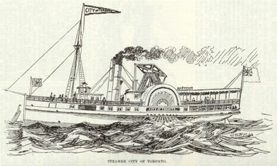 An Old Institution Threatened -Formidable Opposition--The New-Comer Wins. The Niagara route was, as usual, taken by the City of Toronto, under Captain James Dick, in 1874, she making her first trip on April 20th. There was no change either in 1875 until late in the season, when the City was joined by the Southern Belle. In 1876 the City and the Belle formed a joint line on the route, but again in 1877 the former had the road to herself.
