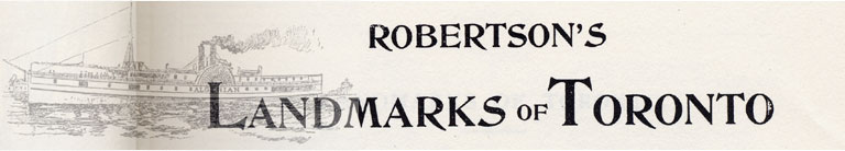 Both these steamers are lighted throughout by electricity, and when loaded with pleasure-seekers at night present a gay and unique appearance. They are universally considered the finest ferry steamers to be found between Hudson's Bay and the Gulf of Mexico. One pleasing thing in connection with them is that almost daily throughout the season hundreds of the inmates of the charitable institutions of the city are provided with free excursions upon them by their proprietors. The John Hanlan, chartered by the Ferry Company, is a screw steamer, built by Abbey, of Port Dalhousie, in 1844, and has a burthen of but 53 tons She is very popular with the younger generation. The president of the Toronto Ferry Company in 1893 is Mr. E. B. Osler, with Mr. William Hendrie, who is well known in the shipping world, as vice-president. Mr. W. A. Esson is manager, whilst Mr. R. A. Smith is secretary and treasurer. The company's office and Board room is at 18 King street west, Toronto. There is no better evidence of how well they do what they undertake to do than the "act that no one ever hears anything about them or their affairs.