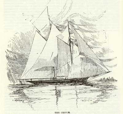 Then from 1886 until 1890, both years inclusive Mr. G. Gooderham with the Oriole-- the yacht in which all Torontonians take an interest--was the victor. In 1891 the Vreda, Mr. A. R. Boswell's new yacht, won the cup only to have it wrested from her in the year 1892 by the Oriole, this being the sixth victory for the latter. In 1893 Mr. Norman Dick's yacht the Zelma, won the race after a very spirited contest.