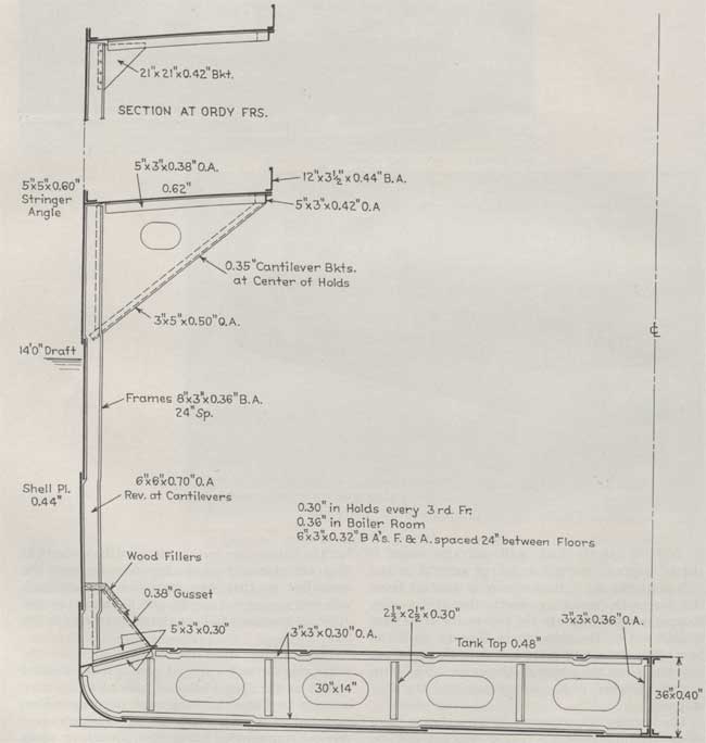 Fig. 18 Midship Section of Standard Bulk Canaller Built 1927-29 by Swan Hunter and Wigham Richardson & Co. Ltd.