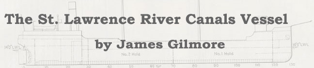 The St. Lawrence River Canals Vessel by James Gilmore conversion to TEIlite-conformant markup by Walter Lewis Assistance with the indexing provided by William Lafferty, Stephen Salmon, John D. Stevenson, Paul Adamthwaite, Ian Buxton and members of MARHST-L Halton Hills, ON : Maritime History of the Great Lakes 2001 based on the original document: James Gilmore, Partner, Milne, Gilmore & German, Montreal, P. Q., Canada. "The St. Lawrence River Canals Vessel",Society of Naval Architects and Marine Engineers, Transactions, 1957, pp. 111-61.