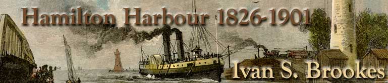 The steamer GENEVA,Capt. A. G. Stanton, made five round trips to the Beach daily from MacKay's Wharf, 15 cents return. Also, from MacKay's, the ECLIPSE was running two round trips to Oaklands and the Beach at 10 and 15 cents, respectively. The steamer STARLING,Capt. R. Henderson, was operating from the old Beckett Wharf at Simcoe St. to Rock Bay and John Dynes' Wharf three times daily. In the early hours of Monday, 12 July, the propeller CITY OF ST. CATHARINES,Capt. Jas. McMaugh, was sunk in Lake Huron after being rammed by the American steamer GEORGE A. MARSH, whose captain seemed loath to pick up the passengers and crew of the sinking vessel. After finally doing so, he treated them in so surly a manner, that they transferred to the steam barge DAVID RUST,Capt. Pringle, who did everything possible to make them comfortable. The CITY OF ST. CATHARINES had sailed from Montreal on the 6 July for Chicago with general cargo. She was built in 1874 at Port Robinson by John & James Abbey for T. Bullivant of St. Catharines, later of Hamilton. She measured 139.0 x 26.0 x 10.8, gross 606, net 516 tons. She was salvaged in 1882 and on the 27 September, was towed to Port Huron, where she was repaired and renamed OTEGA. She ended her days at Green Bay, Wis. on the 17 October 1895, when she was destroyed by fire. Oaklands was the scene of a summer theatre production on Friday, 16 July and the patrons arrived from Burlington (no longer called Wellington Square) by the steamer DENNIS BOWEN, from Hamilton by the steamer GENEVA and from Dundas by the STARLING. The steamer PRINCE ARTHUR, which became well-known to Hamiltonians in 1879, was seized by the Customs Officials at Toronto on the 3 August. Her owners had ignored repeated warnings about a deficiency in her life-saving equipment. After some discussion, a special permit was issued, allowing her to proceed to Victoria Park, without passengers, to bring back those people taken down in the morning. On the Civic Holiday, which occurred on the 18 August, the steamer EMPRESS OF INDIA was chartered by the Committee of Management of Christ Church Cathedral for an excursion to Queenston Heights. She sailed from MacKay's Wharf at 8:30 a.m. and left Queenston at 5:30 p.m. calling at Niagara, both ways. A string band and refreshments were provided. Tickets 50 cents. The Cathedral choir went along but were required to "sing for their supper", and speaking of meals, Mr. Palmer of the Monument House at Queenston, put on a "plain and substantial dinner for the excursionists at 25 cents a head. Hamilton workers benefitted from the Government contracts on the Third Welland Canal. The Hamilton Bridge & Tool Company had orders for 19 swing bridges, each 120 ft. long and 30 fixed bridges, each 25 ft. long, About 800 tons of iron would be used in this work, both cast and wrought. The castings were to be made in foundries, of which Hamilton had several and the wrought iron would be partly imported from England and partly made by the Ontario Rolling Mills Co. This meant about a year's work for 75 men who would earn wages totalling $40,000. On Saturday, 14 August, the steamers GENEVA and ECLIPSE had a minor collision when both tried to reach MacKay's Wharf at the same instant. The fourth and last of Flatt & Bradley's rafts left Hamilton on the 23 August, in tow of the tug S. S. EDSALL for Quebec. It contained 80,000 cu. ft. of timber and was the smallest sent down this season.